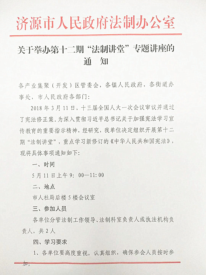 关于举办第十二期“法制讲堂”专题讲座的通知
