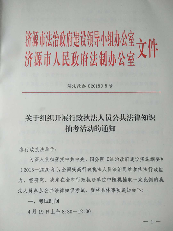 济法政办〔2018〕8号 关于组织开展行政执法人员公共法律知识抽考活动的通知