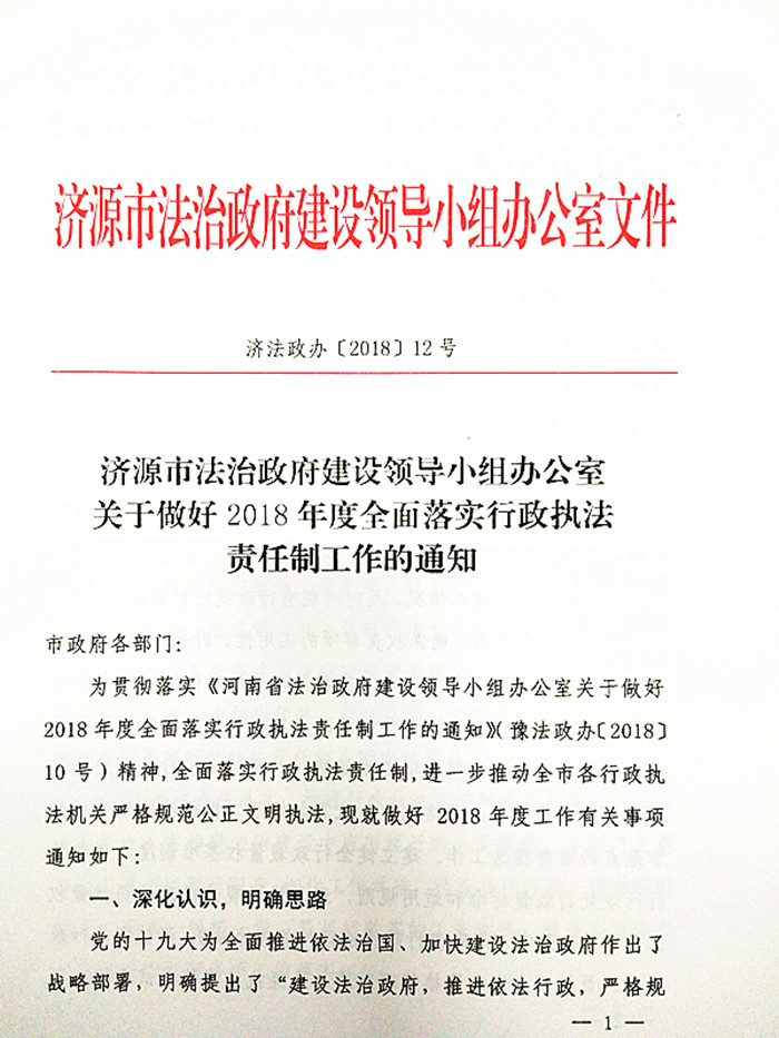 济法政办〔2018〕12号 关于做好2018年度全面落实行政执法责任制工作的通知